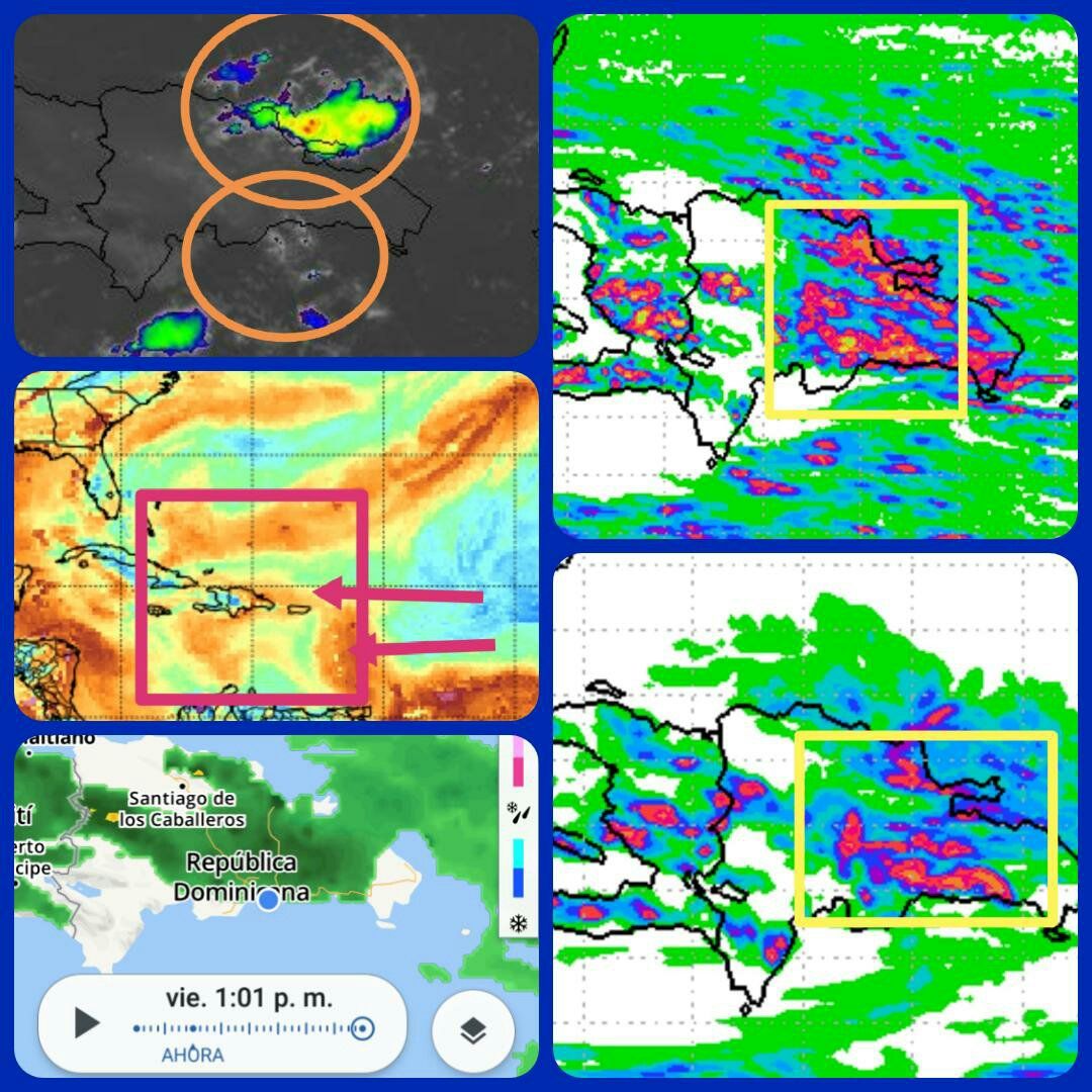 Esta tarde seguirán las lluvias sobre el pais, concentrándose sobre Puerto Plata, Santiago, Bonao, La vega, San Juan de la maguana, Mte Pta, G Sto Dgo, Samaná, H. Mayor y el Seibo, también habrá precipitaciones sobre la zona fronteriza.