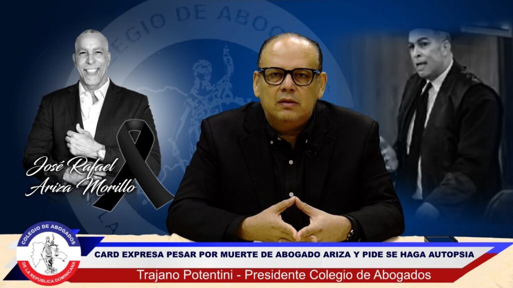Santo Domingo, República Dominicana, 27 de enero 2025.– El Colegio de Abogados de la República Dominicana (CARD), encabezado por su presidente, Trajano Vidal Potentini, ha expresado su más profundo pesar ante el fallecimiento del destacado abogado José Rafael Ariza Morillo. La institución ha extendido sus condolencias a los familiares, amigos y colegas del profesional del derecho, resaltando su trayectoria y aportes al sector jurídico de la nación.