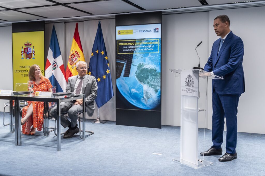 Madrid, España. – En un esfuerzo conjunto por reducir la brecha digital y garantizar un acceso equitativo de conectividad, el Instituto Dominicano de las Telecomunicaciones (INDOTEL), el Gobierno del Reino de España y la empresa española Hispasat suscribieron un acuerdo de colaboración para explorar la participación de República Dominicana el desarrollo de un proyecto conjunto de compartición de infraestructuras espaciales de telecomunicaciones.