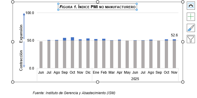 El BCRD explica que el desempeño económico de los Estados Unidos fue uno de los principales factores que incidió sobre el comportamiento de las remesas, ya que desde ese país se originó el 80.7 % de los flujos formales del mes de noviembre, unos US$669.8 millones. En ese sentido, vale resaltar que, el índice de gestores de compras (PMI por sus siglas en inglés) no manufacturero del Instituto de Gerencia y Abastecimiento (ISM por sus siglas en inglés) registró un valor de 52.6 en dicho mes, superior al 52.4 observado en octubre, indicando un mayor dinamismo en el sector servicios, donde se emplea gran parte de la diáspora dominicana.