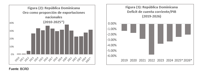 Visto desde una perspectiva más amplia, el análisis del rol del oro debe extenderse al conjunto de la economía. Bajo esta óptica, la República Dominicana se beneficia del aumento del precio del oro principalmente a través del canal real, mediante su producción y exportación. El incremento del precio internacional del oro mejora los términos de intercambio, fortalece el ingreso de divisas y contribuye a un mayor flujo de ingresos fiscales.