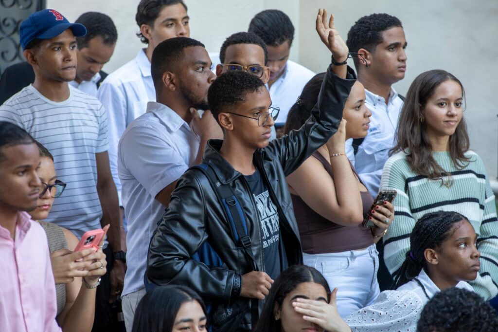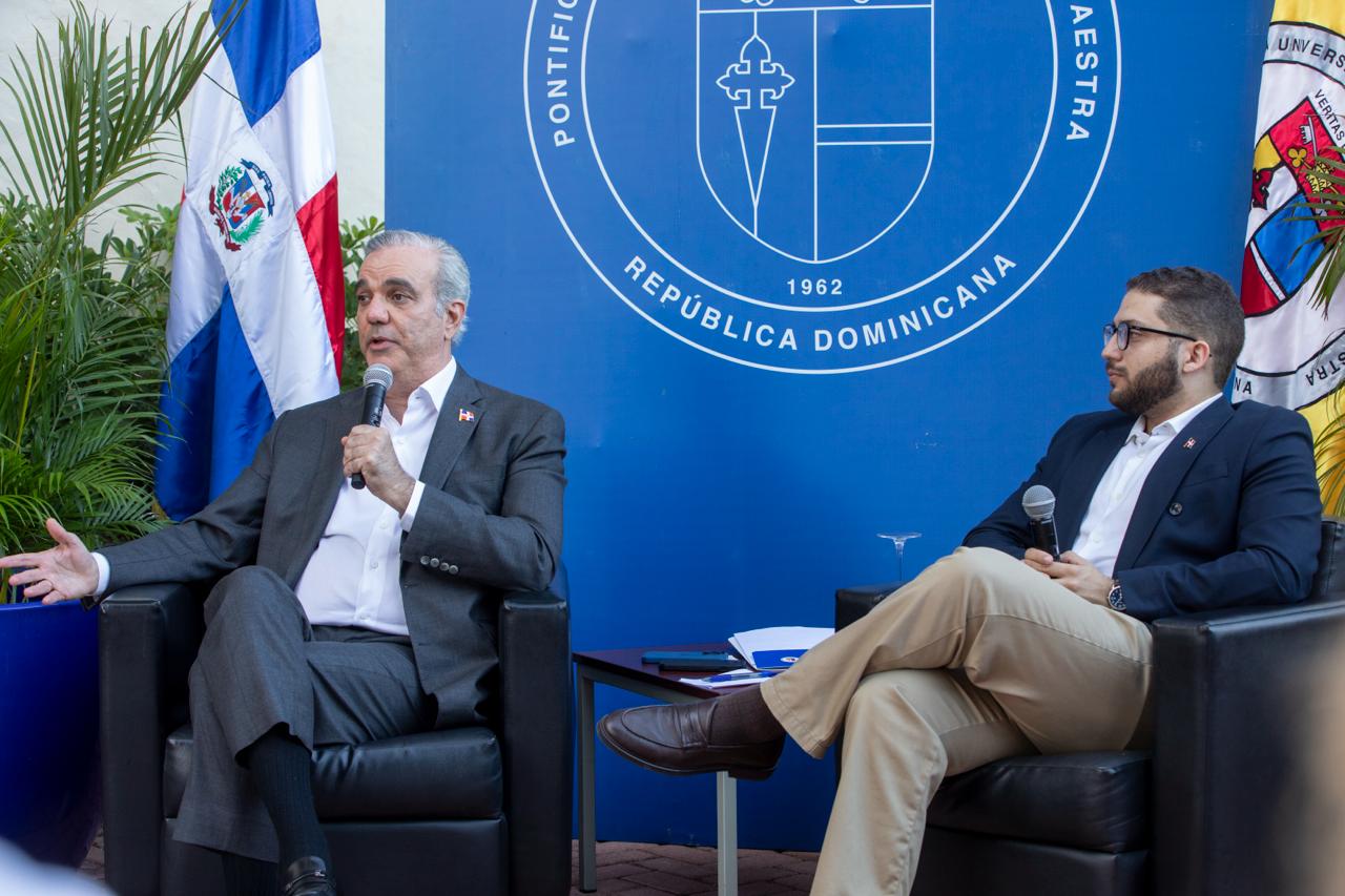 Santo Domingo. – El presidente Luis Abinader participó en un conversatorio político con estudiantes universitarios, afianzando la cercanía y motivación hacia la población joven para que continúen desarrollándose con ahínco a nivel profesional y económico, recordando que la educación es una base fundamental para crear un futuro sólido y contribuir con el desarrollo del país.